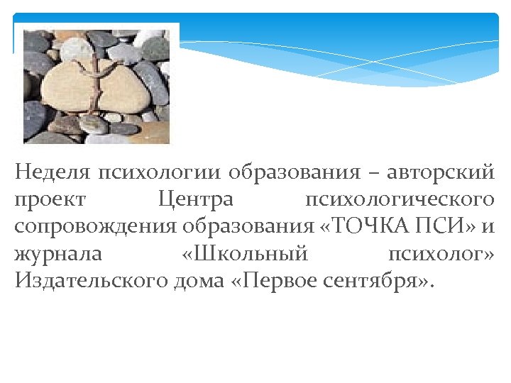 Неделя психологии образования – авторский проект Центра психологического сопровождения образования «ТОЧКА ПСИ» и журнала «Школьный психолог» Издательского дома «Первое сентября» .