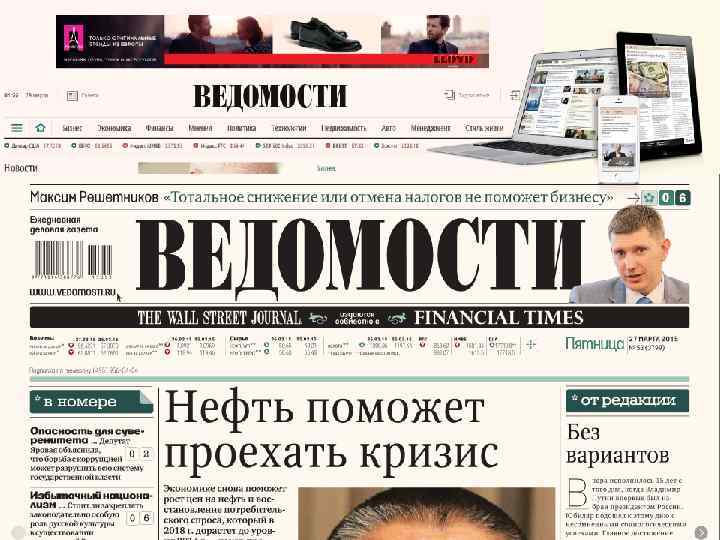 Миссия газеты «Ведомости» — оперативно предоставлять бизнес-сообществу объективную, качественную и полезную информацию, необходимую для принятия решений. (источник: сайт Sanoma Independent Media)