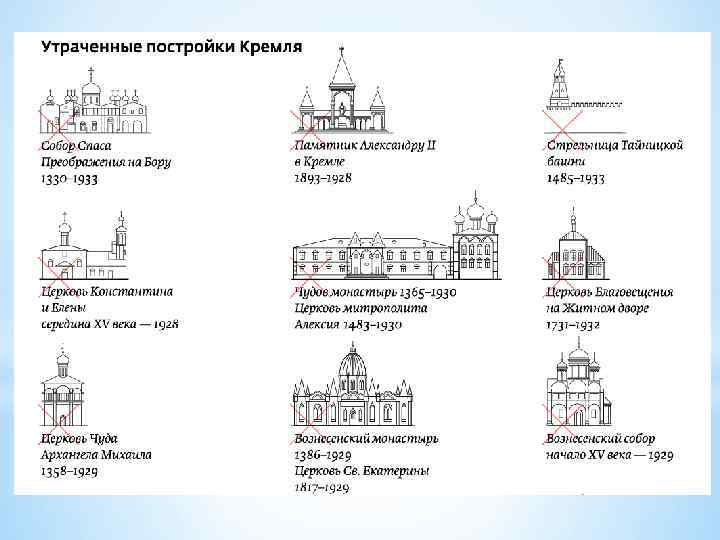 * n. Заложен в 1156 г по приказу Юрия Долгорукого. n. После пожара 1470 г здание рухнуло. n. В 1475 -1479 г. Храм был восстановлен.