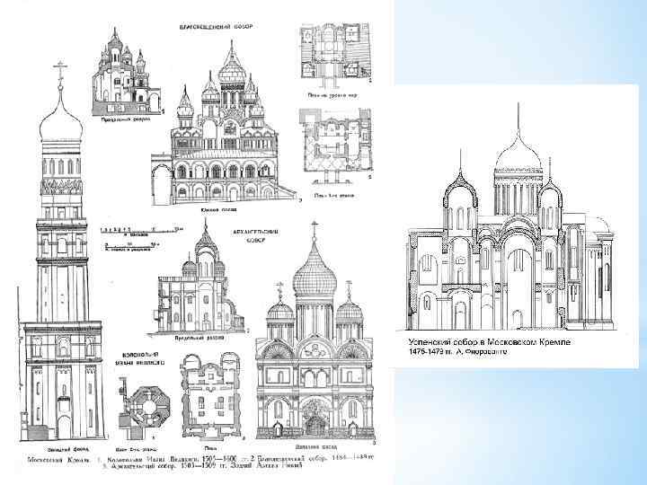 В 1479 году архитектор Фиораванти, прозванный за свое искусство Аристотелем, закончил строительство Успенского собора в Московском Кремле. Образцом для него был Успенский собор во Владимире. Оба храма пятиглавые, но во владимирском соборе 14 столпов, а в московском-6. Стены и столпы собора необычайно тонкие, что создает впечатление пространства, увеличенного внутрь. В московском Успенском соборе находится и знаменитая икона Владимирской Божией Матери. Аристотель Фиорованти Успенский собор(1475 -1479)
