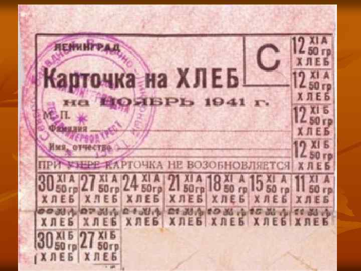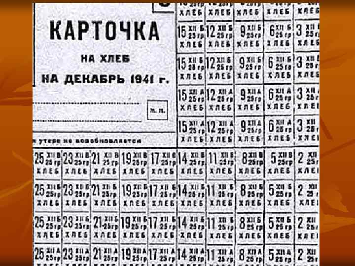 Дневной паек хлеба для жителей осажденного немцами Ленинграда 125 блокадных грамм Ржаная мука не более 7%; n Целлюлоза; n Жмых; n Вытряска из мешков. n