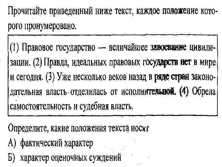 Верны ли следующие суждения о верховенстве права в правовом государстве? А. В правовом государстве право верховенствует главным образом над гражданами и организациями. Б. В правовом государстве право верховенствует в равной мере над гражданами, организациями и государством. 1) верно только А 3) верны оба суждения 2) верно только Б 4) оба суждения неверны К признакам правового государства не относится 1) ориентация судебной власти на исполнительную 2) незыблемость прав и свобод человека 3) взаимная ответственность государства и гражданина 4) правильного ответа нет