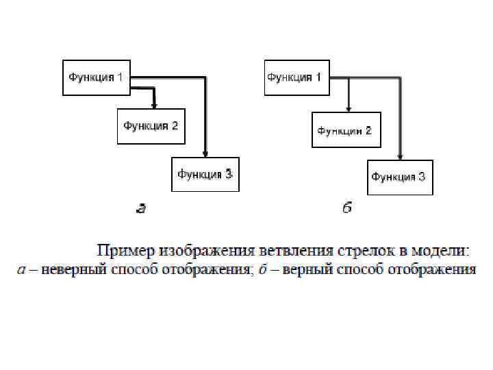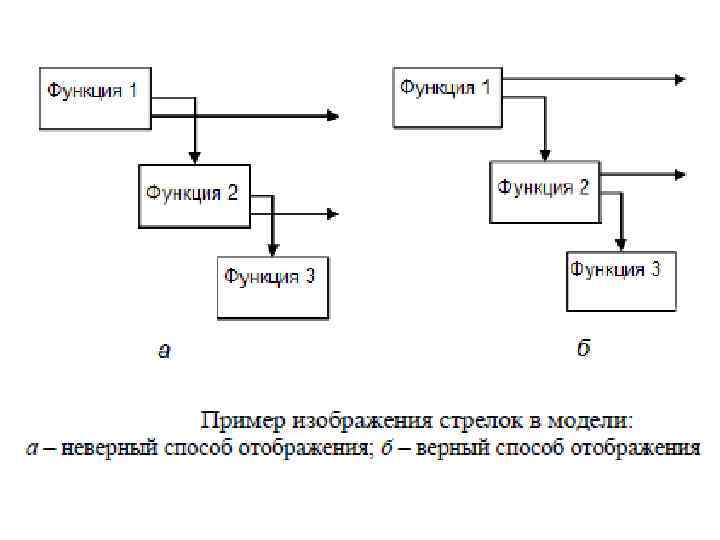 Правила построения диаграмм: 1. В состав модели обязательно должна входить контекстная диаграмма уровня А-0. 2. Блоки на диаграмме должны располагаться (предпочтительно) по диагонали (отношение доминирования). 3. Неконтекстные диаграммы должны содержать количество функциональных блоков от 3 до 6. Три функциональных блока определяется тем, что на меньшее количество (два или один) декомпозировать не целесообразно, лучше добавить один или два блока на диаграмме-родителе. Шесть функциональных блоков определено тем, что большее количество блоков, и соответственно, стрелок, не адекватно воспринимается человеком. 4. Имена функций и стрелок должны быть уникальными. Имена функций должны быть заданы глаголом. Имена стрелок – именем существительным. 5. У любого функционального блока обязательно должна быть хотя бы одна стрелкауправления и одна стрелка-выход. Стрелки-входа может и не быть, но в этом случае, стрелка-управления будет одновременно представлять управляющую и исходную информации. Насчет стрелки-механизма в стандарте функционального моделирования, как в англоязычном, так и в русскоязычном варианте, ничего не сказано, но трудно представить функцию, которая может выполняться автономно без человека или оборудования, исключением являются, например, ядерные реакции. 6. При разработке модели необходимо стремиться к уменьшению количества необязательных пересечений стрелок, минимизировать число петель и поворотов каждой стрелки. 7. Стрелки должны объединяться, если имеют общий источник.