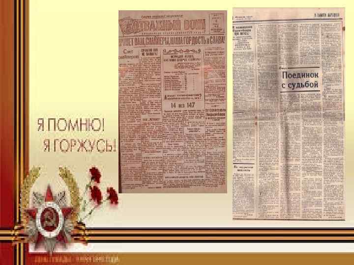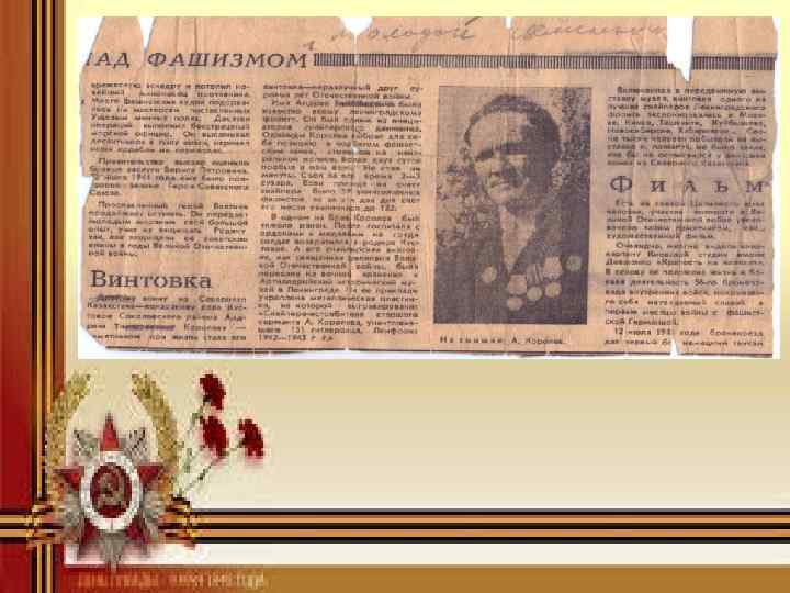 Очерки из газет, рассказывающие о нашем земляке, снайпере 314 -й стрелковой дивизии А. Т. Королёве