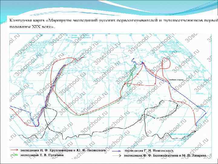 ИНСТРУКЦИЯ § 16 1 экспедиция И. Ф Крузеншерна и Ю. Ф. Лисянского 2 экспедиция Ф. Ф. Беллинсгаузен и М. П. Лазарев 3 экспедиция А. А. Баранова 4 экспедиция Г. Н. Невельского и Е. Путятина Задания: 1. Проложить маршрут на карте 2. Назвать особенности путешествия(не менее 3) 3. Заполнить таблицу ДАТА ЭКСПЕДИЦИЯ ЗНАЧЕНИЕ