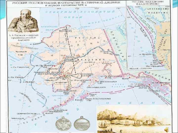 Баранов Александр Андреевич (1746 -1819) Освоение Русской Аляски связано с деятельностью первого главного правителя русских поселений в Аляске (1790 -1818), в результате которой на Аляске была создана сеть русских поселений и началось экономическое освоение края
