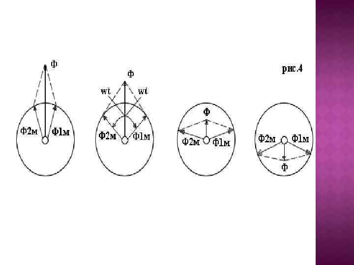 Амплитудные значения магнитных потоков этих полей Ф 1 м и Ф 2 м одинаковы и равны половине амплитуды магнитного потока переменного поля машины Ф 1 м = Ф 2 м = Фм/2. Графическое построение (рис. 4) показывает, как в результате сложения двух одинаковых магнитных потоков Ф 1 м и Ф 2 м, вращающихся в противоположные стороны, получается магнитный поток, изменяющийся по синусоидальному закону: Ф = Фм*sinωt
