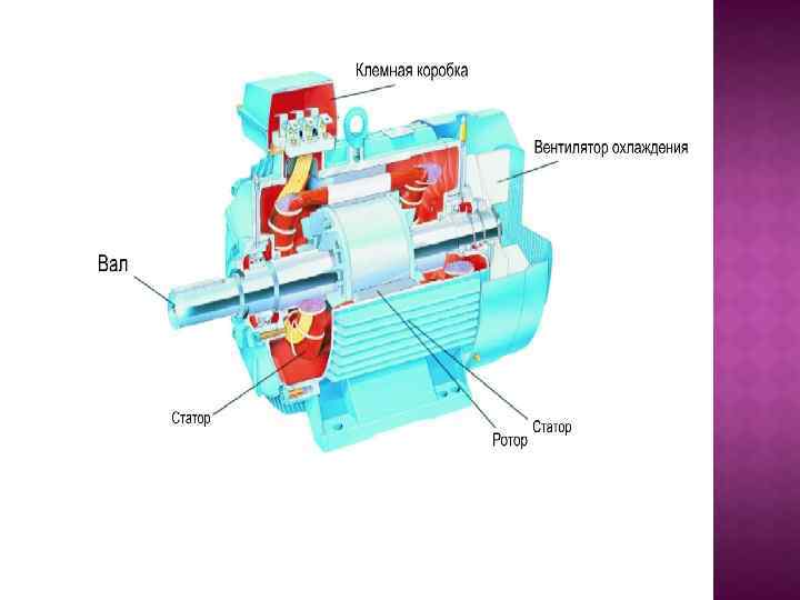Конструктивно двигатель состоит из статора и ротора. Статор состоит из литого корпуса цилиндрической формы (см. рис. 1 а). Внутри статора располагается магнитопровод с вырубленными пазами, в которые укладывается статорная обмотка. Концы обмоток выводятся в клеммную коробку и могут быть соединены как треугольником, так и звездой и подключаются к трехфазной сети.