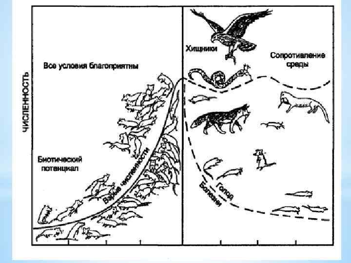 *Несмотря на то что у разных видов составляющие биотического потенциала неодинаковы, имеется общее свойство: у всех видов он достаточно высок для стремительного увеличения численности при благоприятных условиях среды. Рост популяции может быть столь быстрым, что может привести к популяционному взрыву.