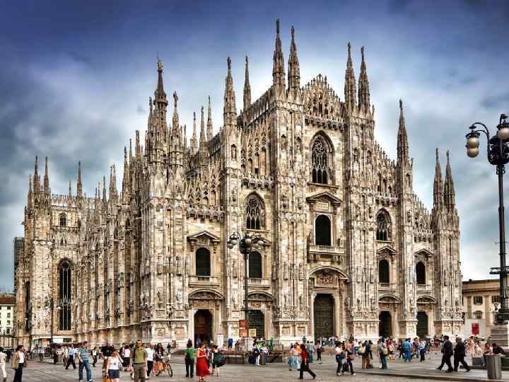 Миланский собор. Этот самый большой из всех готических соборов мира вмещает 40 000 молящихся. Строительство собора началось в 1386, шпиль был сооружен в 1756 -1779, главный фасад завершен в 1805 -1813, а последний шпиль - в 1858. Таким образом, собор строился 572 года!
