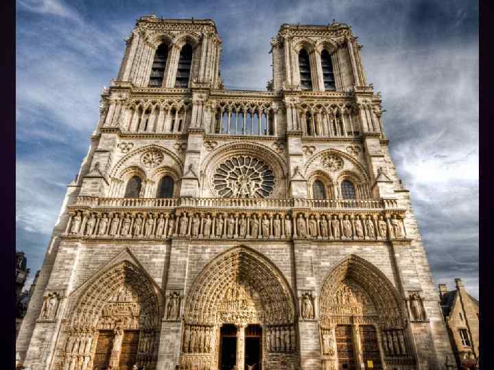7. Готика. Романский стиль в архитектуре сменился готическим (итал. «готский» -германское племя – готы, жившие у берегов Балтийского моря) – художественный стиль возникший в середине ХIIв. во Франции. В те времена «готическое» означало «варварское» в противовес «римскому» . Искусство не следовавшее античным традициям воспринималось современниками именно так, и только лишь в ХIХ в. в. эти представления изменились и перестали их считать «темными» . Самые знаменитые сооружения готического стиля – соборы. Соборы стали светлее и по сравнению с романскими в два раза выше за счет стрельчатых арок, остроконечных шатровых крыш и фронтонов. Высокие своды соборов, цветные витражи, сквозь которые лились потоки света, торжественные звуки органа – все это поражало воображение людей, внушало им мысль о святости божественной власти. Готический стиль был распространен почти во всей Европе, кроме стран, где исповедовали православие (Россия, Болгария, Сербия, Греция). Наибольшего расцвета готика достигла во Франции и Германии. Собор Парижской богоматери (французы наз. его Нотр-Дам де Пари) ранняя готика. В Италии, самый удивительный – Миланский. Это единственный в Европе мраморный собор. Он богато украшен – в нем 2300 скульптур.