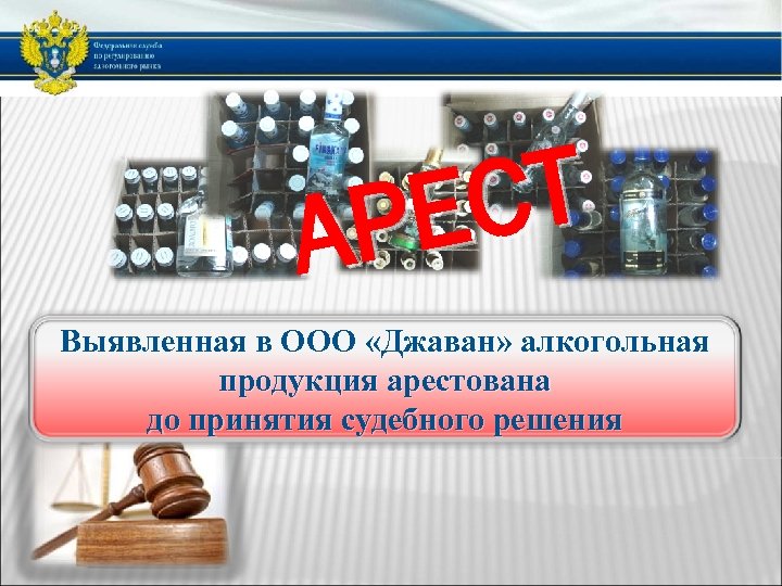 СТ РЕ А Выявленная в ООО «Джаван» алкогольная продукция арестована до принятия судебного решения
