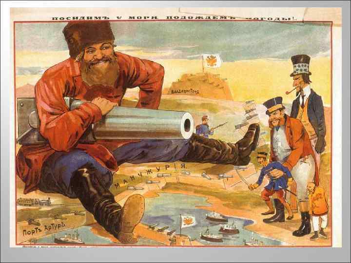 «Большая азиатская программа» Безобразовская клика группа реакционеров-помещиков. Хотели создать АО эксплуатации богатств Кореи и Маньчжурии. Витте Сергей Юльевич Столыпин Петр Аркадьевич ØРоссия к войне не готова. ØНужна экономическая экспансия и реформы А. М. Безобразов М. В. Родзянко Е. И. Алексеев В. К. Плеве ØЯпония не готова к войне Ø «маленькая победоносная война» сможет отвлечь народ от набиравших силу антиправительственных выступлений.
