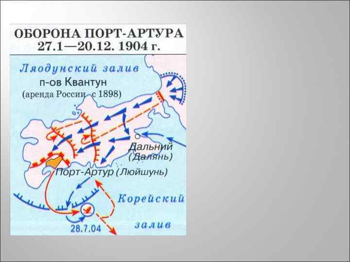 Алексеев – наместник на Дальнем Востоке, Главнокомандующий сухопутными и морскими силами в Тихом океане 28 января 1904 — 12 октября 1904 24. 01 – разрыв дип. отношений А. Н. Куропаткин 26 на 27. 01 – Порт-Артур 27. 01 – Чемульпо (Варяг, Кореец) 28. 01 – объявление войны Того Ояма 31. 03 - попытка перехвата десанта японских судов. = гибель С. О. Макарова, В. В. Верещаги 03 - высадка японского десанта Битва при Вафангоу 27. 01 или 31. 07 – 20 12 – оборона Порт-Артура 329 дней 20. 12. – новогодний подарок А. М. Стессель сдал крепость Е. И. Алексеев А. Н. Куропаткин З. П. Рожественский Н. И. Небогатов С. О. Мака ров Р. И. Кондратенко А. М. Стессель 7 линейных кораблей, 6 крейсеров, 20 миноносцев, 16 малых кораблей