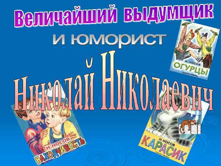 Герои книг Николая Носова – весёлые фантазёры. Читая рассказы и повести Н. Носова, вы не раз ловили себя на мысли, что вам хочется подражать его героям. Писатель верит в ребят , в их доброту, отзывчивость и во множество других замечательных качеств. Недаром его повести и рассказы почти всегда хорошо кончаются.