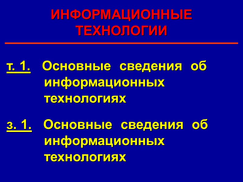 ИНФОРМАЦИОННЫЕ ТЕХНОЛОГИИ з. 1. Основные сведения об информационных технологиях т. 1. Основные сведения об информационных технологиях