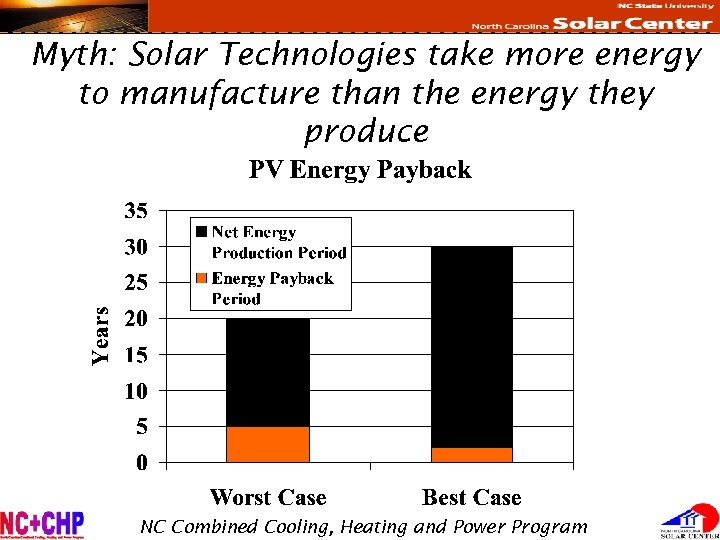 Myth: Solar Technologies take more energy to manufacture than the energy they produce NC Combined Cooling, Heating and Power Program