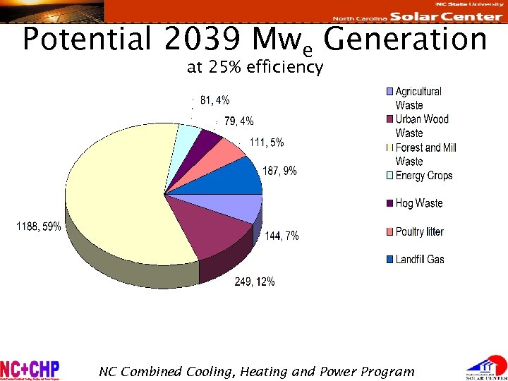 Total Biomass Thermal Fuel Value 200 x 1012 Btu/yr 6650 Mwt 1662 Mwe NC Combined Cooling, Heating and Power Program