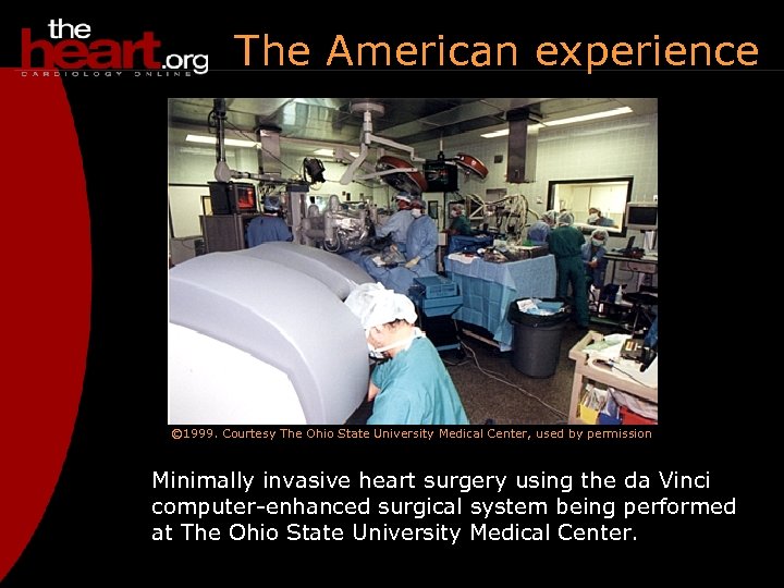 The American experience © 1999. Courtesy The Ohio State University Medical Center, used by permission Minimally invasive heart surgery using the da Vinci computer-enhanced surgical system being performed at The Ohio State University Medical Center.