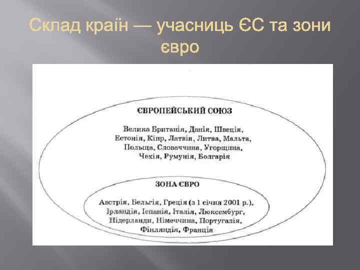 Етапи реалізації валютної інтерграції — Перший етап створення Європейського Центрального банку (ЄЦБ), Європейської системи центральних банків (ЄСЦБ) та впровадження в безготівковий обіг єдиної валюти євро. Із січня 1999 року одинадцять країн ЄС створили новий економічний і валютний блок (ЄВС): Німеччина, Франція, Австрія, Бельгія, Нідерланди, Люксембург, Іспанія, Португалія, Італія, Фінляндія, Ірландія створили нову валютну зону в Європі й запропонували нову єдину європейську грошову одиницю — євро. Відповідно до підпункту 1 ст. 2 Правил ЄС від 17 червня 1997 p. , попередня грошова одиниця ЄС — ЕКЮ трансформувалась у євро у співвідношенні: 1 ЕКЮ= 1 евро. Ця значна історична подія спричинила суттєві зм — Другий етап: ЄЦБ як перший крок буде використовувати євро в конверсійних операціях та експортно-імпортних розрахунках на валютнокредитних ринках і біржах. Наступним кроком буде заміна національних купюр і монет новою європейською грошовою одиницею — євро. Нова єдина валюта вступить у готівковий обіг із січня 2002 року. В системи міжнародних розрахунків будуть вноситися відповідні зміни і доповнення. Спочатку (протягом 6 місяців) нова валюта буде в готівковому обігу одночасно з національними валютами, які згодом "втратять статус платіжного засобу іни не тільки в європейській, а й у світовій економіці.