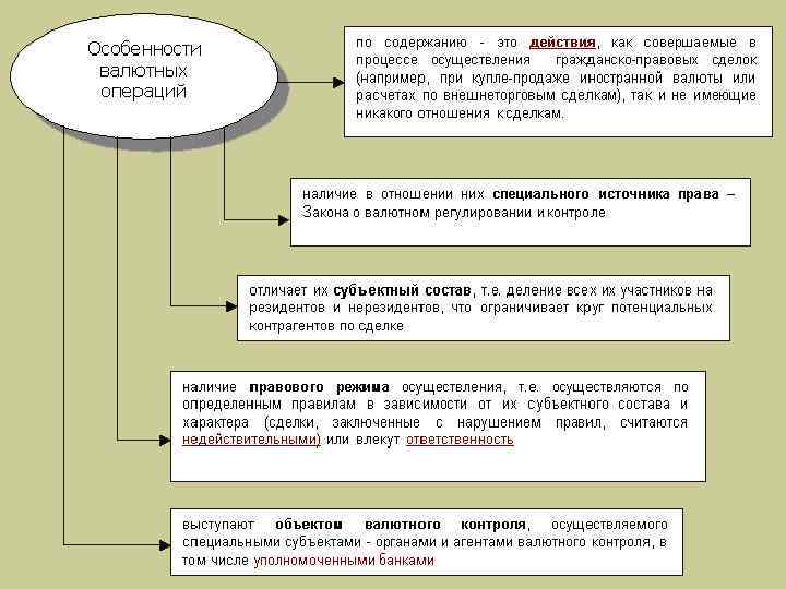 Особенность валютных операций заключается в том, что они должны осуществляться не только с соблюдением гражданского законодательства, но и в строго определенных рамках валютного законодательства, т. е. с учетом запретов и ограничений, установленных законом, целью которого является обеспечение экономической безопасности государства, устойчивость его денежной системы как одной из основ общественных отношений.