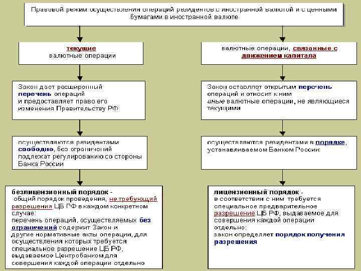 Общие правила осуществления валютных операций резидентами текущие операции осуществляются резидентами без ограничений, т. е. без получения специального разрешения (лицензии) Банка России капитальные операции осуществляются резидентами в порядке, установленном Банком России