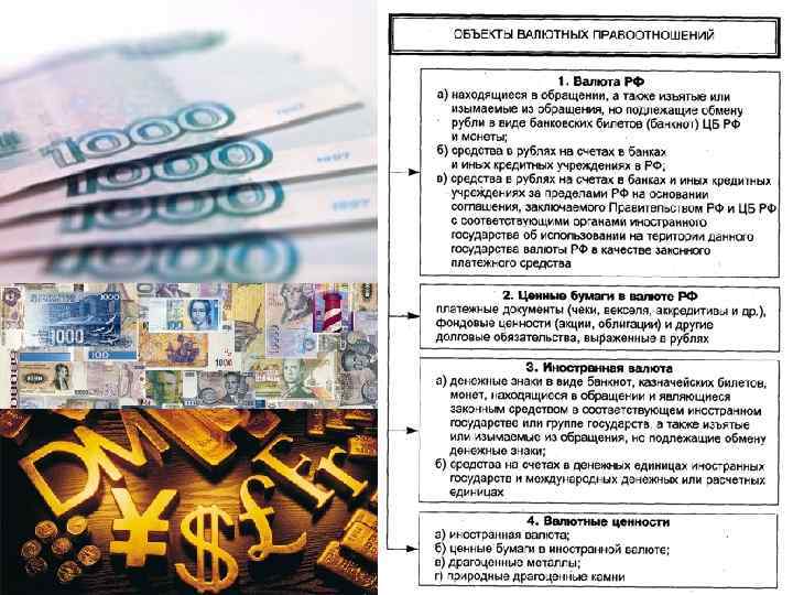 Статьей 140 Гражданского кодекса Российской Федерации (далее – ГК РФ) установлено, что законным платежным средством, обязательным к приему по нарицательной стоимости на всей территории Российской Федерации, является рубль. Случаи, порядок и условия использования иностранной валюты на территории Российской Федерации определяются законом. В статье 141 ГК РФ указано, что виды имущества, признаваемого валютными ценностями, и порядок совершения сделок с ним определяются законом о валютном регулировании и валютном контроле.