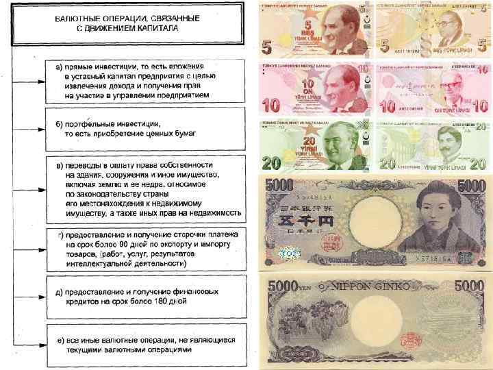 г) предоставление и получение отсрочки платежа на срок более 90 дней по экспорту и импорту товаров (работ, услуг, результатов интеллектуальной деятельности); д) предоставление и получение финансовых кредитов на срок более 180 дней; е) все иные валютные операции, не являющиеся текущими валютными операциями. Все валютные операции, которые не попадают в разряд текущих операций, Законом признаются капитальными операциями.