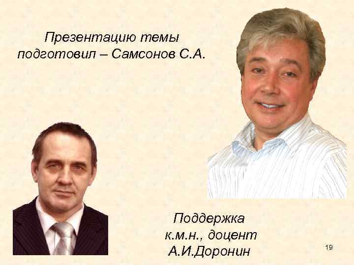 Презентацию темы подготовил – Самсонов С. А. Поддержка к. м. н. , доцент А. И. Доронин 19