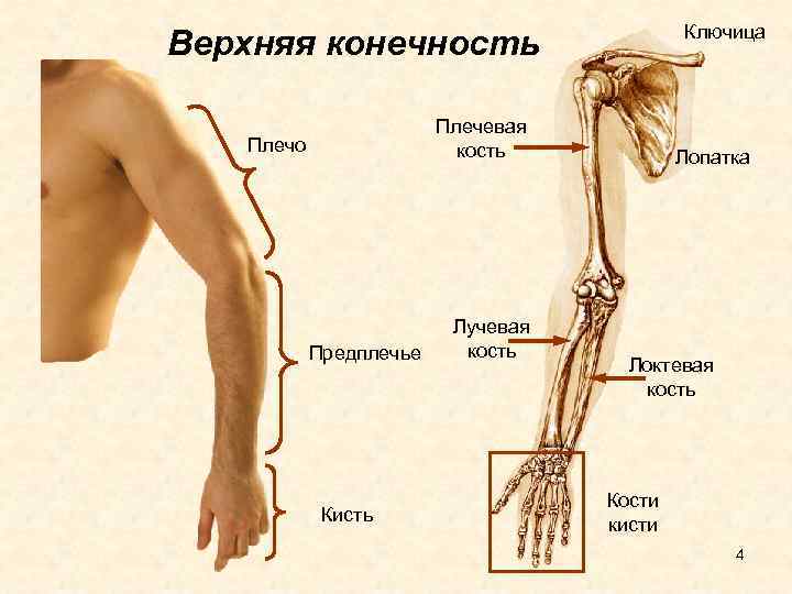 Ключица Верхняя конечность Плечевая кость Плечо Предплечье Кисть Лучевая кость Лопатка Локтевая кость Кости кисти 4