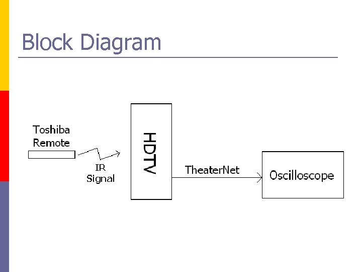 Signal Flow p Remote control sends signal to TV p TV sends electric signal to IR blaster p For this project, we are going to test the signal from TV to other devices IR Blasting area