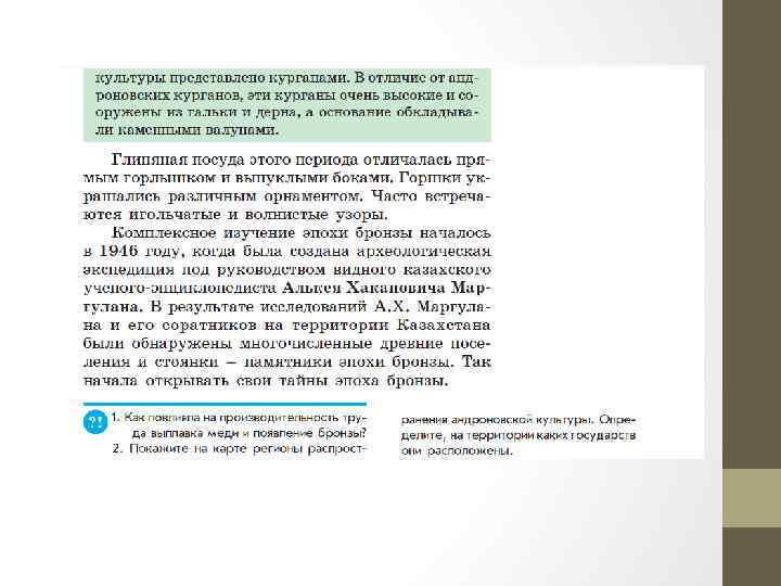 1. Видный казахский ученыйэнциклопедист, исследователь эпохи бронзы: • A) А. Байтурсынов • B) А. Маргулан • C) А. Бокейханов • D) М. Тынышпаев • E) Ш. Уалиханов