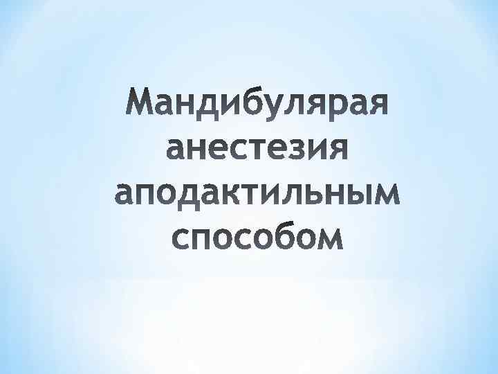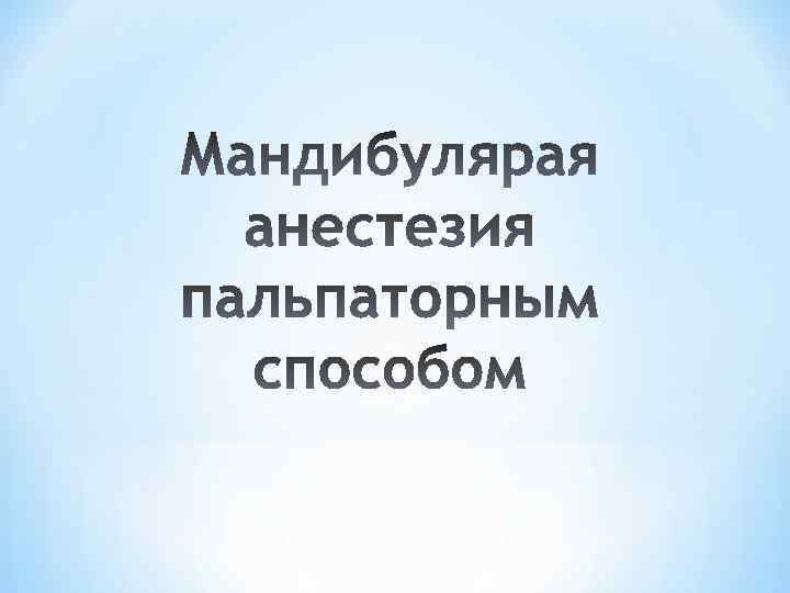 Мандибулярная анестезия Внутриротовой способ Пальпаторно Аподактильно Внеротовой способ