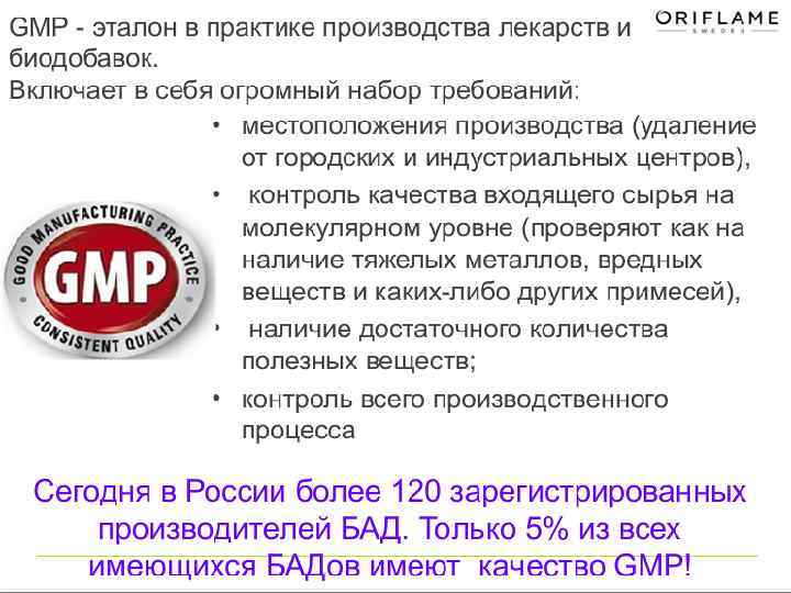 Сравнительная характеристика • Цена продукта конкурента выше стоимости коктейля от Орифлэйм на 300 рублей (1593 рубля) • В составе белковой смеси преобладает казеин и его соли, которые плохо растворяются и хуже усваиваются. • Tauriainen и коллеги в 2011 году изучили полезный потенциал смеси сывороточного протеина и казеина во время похудения. Результат показал, что сывороточный белок обладает большим преимуществом для сжигания жира и сохранения мышц • Не указан ГИ продукта. • Продукт конкурента получил разрешение центра по сертификации Минздрава РФ, государственной санитарноэпидемиологической службой страны, Института питания РАМН, но нет сертификата GMP