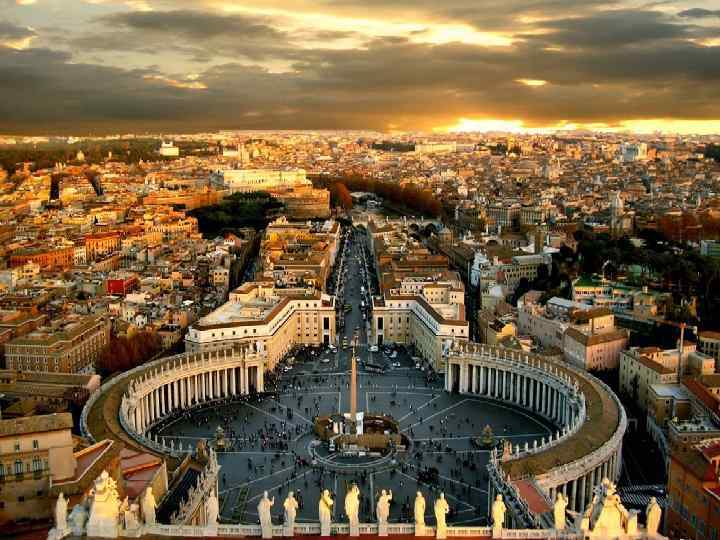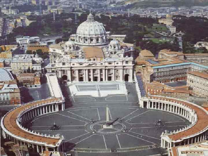 • Ватикан, одна з європейських мікрокраїн, розташований на Ватиканському пагорбі в західно-центральній частині Риму, на кілька сотень метрів на захід від річки Тібр. Її кордони — 3, 2 кілометра, знаходиться в межах Італії. Це оборонна споруда, побудована в давнину для захисту Папи від вторгнення ззовні. Ситуація є більш суперечливою у знаменитому Сквері Святого Петра (Peter's Square) перед Базилікою Петра (Peter's Basilica), де межі кордону в безпосередній близькості від еліпса утвореного колонадою Берніні (Bernini 's colonnade), саме тут розповсюджується юрисдикція муніципальної римської поліції, на яку й була покладена охорона порядку в цій частині. Ватикан є найменшою суверенною державою в світі, площею в 0, 44 квадратних кілометри — 44 га, 110 акрів. Число постійних жителів Ватикану складає приблизно 800 чоловік, 450 з яких носять духовний сан.