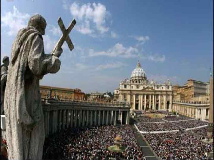 Політична система • Ватикан - абсолютна теократична монархія, керована Святим Престолом. Сувереном Святого Престолу, в руках якого зосереджені абсолютна законодавча, виконавча і судова влада, є Папа Римський, що обирається кардиналами на довічний термін. Після смерті Папи і під час конклаву аж до інавгурації нового Папи його обов'язки виконує камерленго.