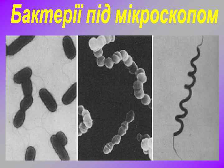 Бактерії – найдрібніші з організмів, що мають клітинну будову. Їхні разміри складають від 0, 1 до 10 мкм. На одній типографській крапочці можна размістити сотні тисяч бактерій середнього разміру. Побачити бактерії можна тільки в мікроскоп, тому їх називають мікроорганізмами. Наука, що їх вивчає називається мікробіологією. Галузь мікробіології, що вивчає бактерії, називають бактеріологією. Започаткував її Антоні ван Левенгук у XVII ст.