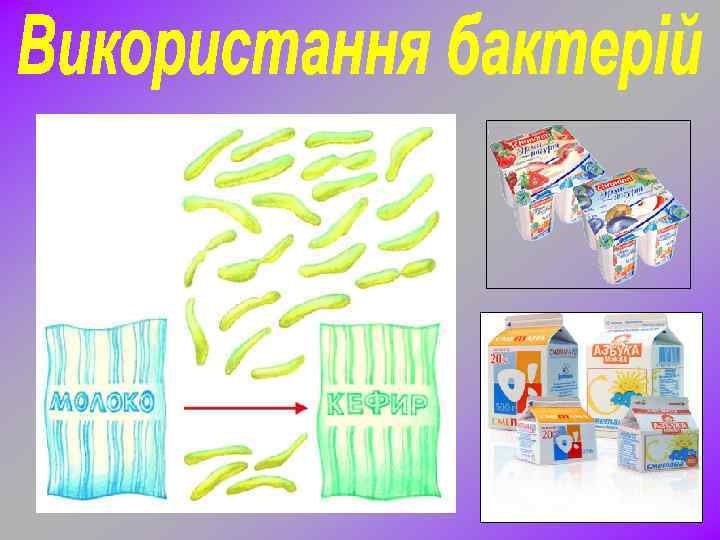 Бактерії широко використовуються в харчовій промисловості: - для виробництва сирів та кисломолочної продукції, (творог, простокваша, масло, сметана); - квашення плодів та овочів; - в сільскому господарстві при силосуванні кормів; - оцтовокислі бактерії бродіння використовуються для одержання винного оцту та приготування маринадів.