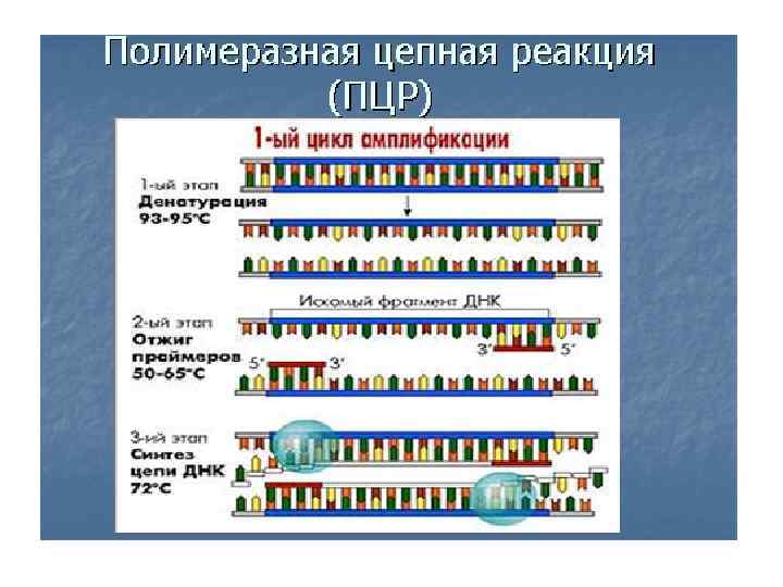 Разработка ПЦР • Химический синтез праймеров • Выделение термостабильной ДНКполимеразы из термофильной бактерии Thermus aquaticus – Taq I – А. Каледин и С. Городецкий (1980) • Разработка принципа ПЦР К. Муллисом (1986)