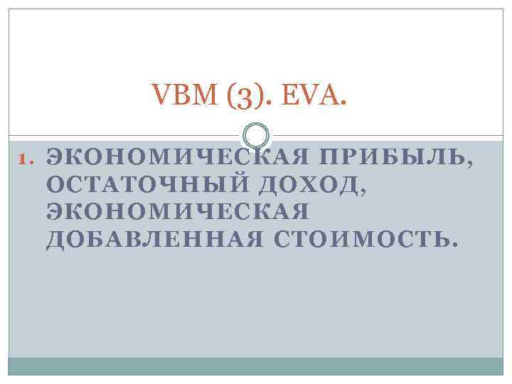 VBM (3). EVA. 1. ЭКОНОМИЧЕСКАЯ ПРИБЫЛЬ, ОСТАТОЧНЫЙ ДОХОД, ЭКОНОМИЧЕСКАЯ ДОБАВЛЕННАЯ СТОИМОСТЬ.