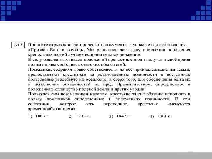 Работа с датами • Систематизация по периодам Расставить хронологически 1 убийство в Сараево 2 Реформы Cтолыпина 3 Возникновение партии эсеров 4 начало работы II Гос. Думы 5 «Кровавое воскресение» 6 русско-японская война 7 манифест Николая II о введении демократических свобод 8 аграрная реформа П. А. Столыпина 9 «третьеиюньская монархия» 10 Брусиловский прорыв 11 I съезд РСДРП 12 Портсмутский мир 13 убийство Распутина 14 создание "Прогрессивного блока" 15 Ленские расстрелы