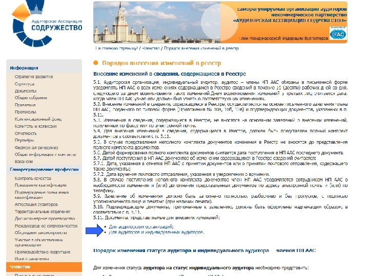 Порядок внесения изменений в реестр НП ААС www. auditor-sro. org / Раздел «Членство» / Порядок внесения изменений в реестр НП ААС
