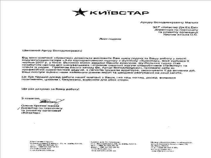 Лист подяка.