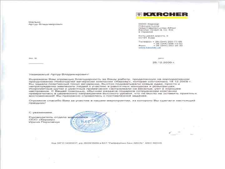 Общая информация. Меня зовут Артур Малько. Я хочу предложить Вам свои навыки и опыт работы ведущим праздников и вечеринок. Я имею хороший стаж и все необходимые данные. Более того я молодой, перспективный, трудолюбивый, артистичный. Более детальная информация в моем резюме. Спасибо за внимание, надеюсь моя кандидатура Вас заинтересует.