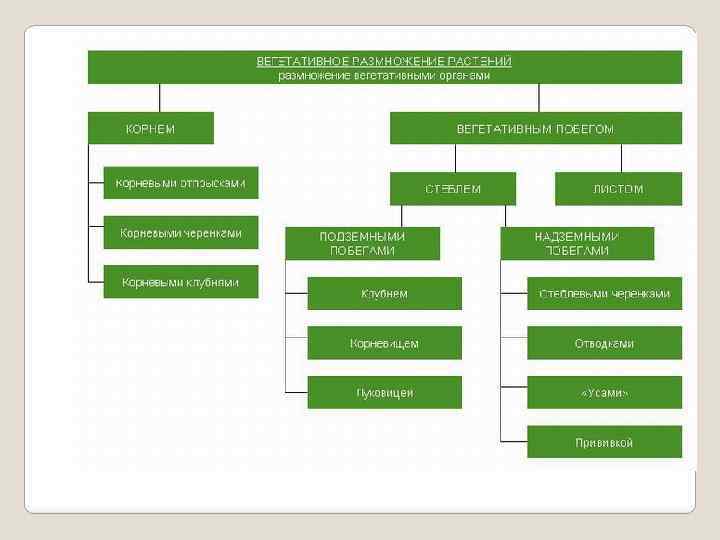Мы познакомились с основными способами вегетативного размножения растений. Внимательно рассмотрите следующую схему. С каким способом вегетативного размножения нам еще предстоит познакомиться?