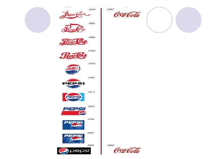 l В 2008 году Pepsi представила в Штатах новую айдентику линейки газированных напитков. Красно-синий круг, разделенный белой волной, сменили на «улыбку кашалота» . l Компания преобразовала логотипы семейства Pepsi в серию смайликов, которые различаются для разных продуктов. Цвета логотипа — синий, белый и красный, остались неизменными. Только в Pepsi Max синий стал черным, под цвет этикетки. l «Смайлик» расширяется в зависимости от «крепости» напитков: в логотипе Diet Pepsi чуть усмехается, в Pepsi Max смеется, а логотип всей марки Pepsi просто улыбается.
