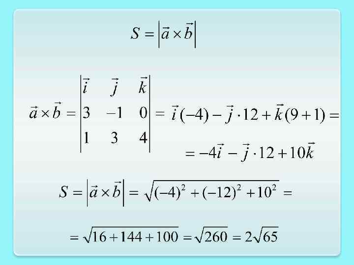 Пример. Даны координаты вершин треугольника А(2, -1, 3), В(1, 1, 1), С(5, -2, 5). Найти его площадь. B A C