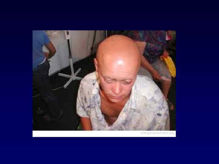 Хроническая лучевая болезнь • В III стадии хронической лучевой болезни отмечаются более глубокие изменения в центральной нервной системе (по типу энцефалопатии), нарушения функций внутренних органов и резкое угнетение кроветворения. • В крови – глубокая лейкопения, нейтропения, лимфопения, тромбоцитопения. • Снижено содержание сывороточных белков, нарушено их соотношение (диспротеинемия). • Практически эта стадия встречается редко.