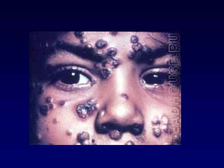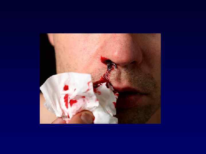 Клиническая картина • В период агранулоцитоза могут развиваться инфекционные осложнения, вызываемые микрофлорой внешней среды, кишечника и верхних дыхательных путей. • При агранулоцитозе наблюдаются высокая постоянная лихорадка, не исчезающая при назначении антибиотиков, некротические поражения слизистых оболочек рта и носоглотки. Из-за язвенного поражения ротовой полости больной не может принимать пищу. При неравномерном облучении агранулоцитоза может и не быть • Вследствие падения числа тромбоцитов в крови у облучённых возникает кровоточивость (синяки на месте инъекций, носовые кровотечения и т. п. )