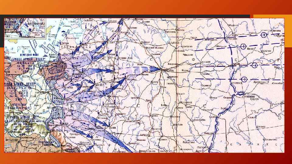 Барбаросса • Молниеносная война (Блицкриг) • Нападение на СССР тремя группами армий: Север (цель - Архангельск) Центр (цель - Казань) Юг (цель – Астрахань)